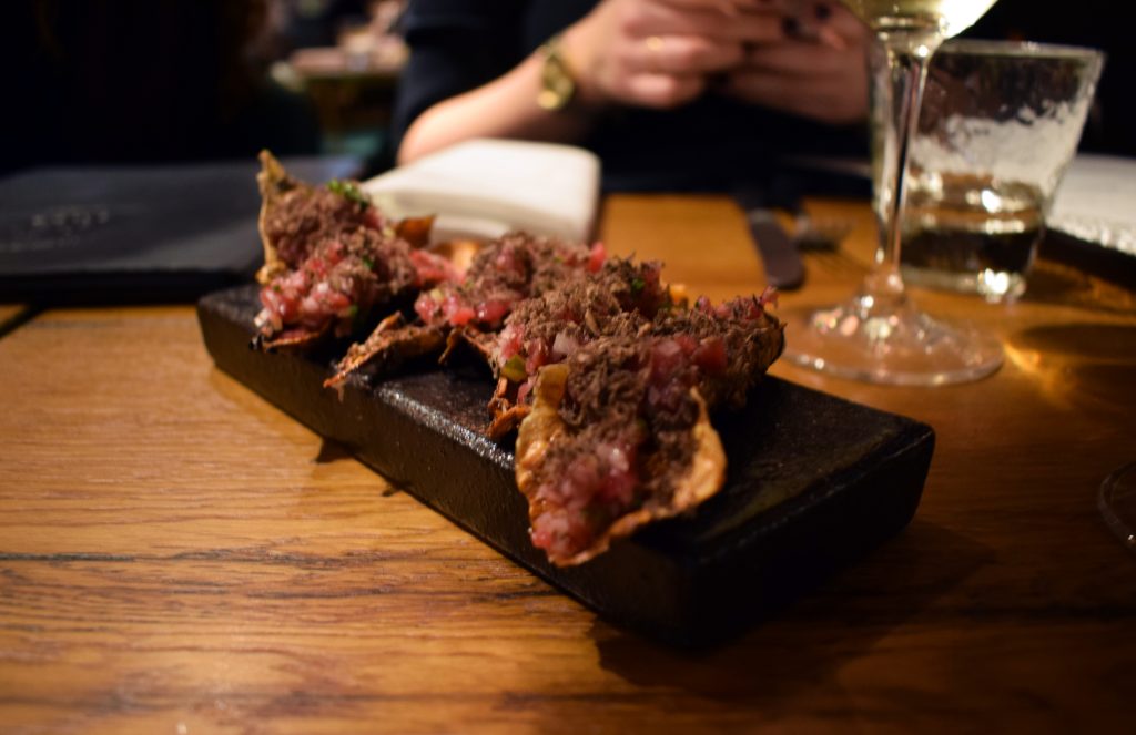 Before jumping into the main event, we were treated to nibbles and tasters from the lunch menu, including deep fried iberico stuffed olives with blood orange, crispy beef tendons, beef tartare crisps with truffle, sourdough bread with whipped beef fat (divine) and a sample of beef chilli.